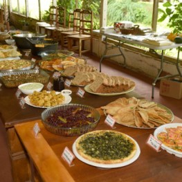 Locação do Salão da Terra para a reunião de seu grupo, formação, retiro espiritual, práticas de yoga e afins. Ambiente de paz, silêncio e recolhimento. Há uma Cozinha Caipira que pode ser locada para preparar a alimentação de seu grupo, é só trazer os ingredientes e cozinhar. Existem mesas e cadeiras em local coberto para as refeições para até 40 pessoas. ·