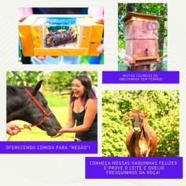 Somos um sítio-escola que funciona em uma propriedade de porte pequeno e familiar. Trabalhamos e vivemos uma sustentabilidade real, gostamos de paz e de silêncio, e acreditamos que os encontros com a natureza podem ser terapêuticos. Nosso objetivo durante a visitação é proporcionar um mergulho em conhecimentos vividos pelo homem há tanto tempo, e que estão sendo revisitados aqui: cultivos orgânicos, trabalho sem excesso de tecnologias caras, energias renováveis, construções naturais com terra, reuso e reciclagem de muitos elementos do dia a dia. Os recursos para manter nosso projeto vivo vem das visitações, cursos, e dos produtos que vendemos.