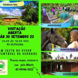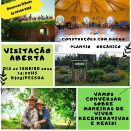 Durante a estadia é possível contratar o serviço de visitação guiada, onde vamos conhecer as construções naturais, os nossos bichos que vivem dentro da lógica do bem estar animal e respeito, jardim de ervas, hortas, saneamento ecológico, abelhas sem ferrão, lojinha com nossos produtos orgânicos certificados. Podem trazer um lanche e fazer um piquenique aqui no sítio, temos mesas, bancos e gramados que são ótimos para esse fim. Os visitantes podem ainda aproveitar o por do sol, contemplando o astro-rei de cima do telhado verde, ou do mirante.